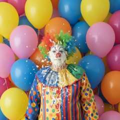 Big Bird the Clown was pied in the face with a real-crust pie by PiedDCguy