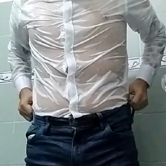 Wet1LosAngeles got pulled into the shower by RickA with his clothes on