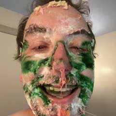 JustJade was surprised by theoldmanandthepie with a big sloppy cream pie to the face